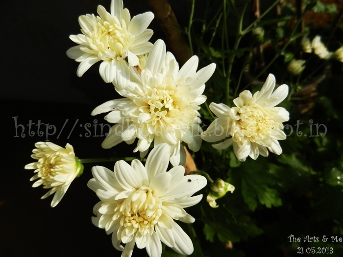 A bunch of white chrysanthemum with a lemonade shade from my mom's garden.